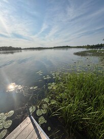 We pride ourselves on being honest and upfront with our guests and thus want to be clear regarding the lake conditions on Starr Bay. Even though the water is swimmable; The water in Starr Bay is clear but very shallow and weedy in a portion of the shallowest areas, making it harder to swim. We have included a few photos so that guests can see what we are referring to in the lake.