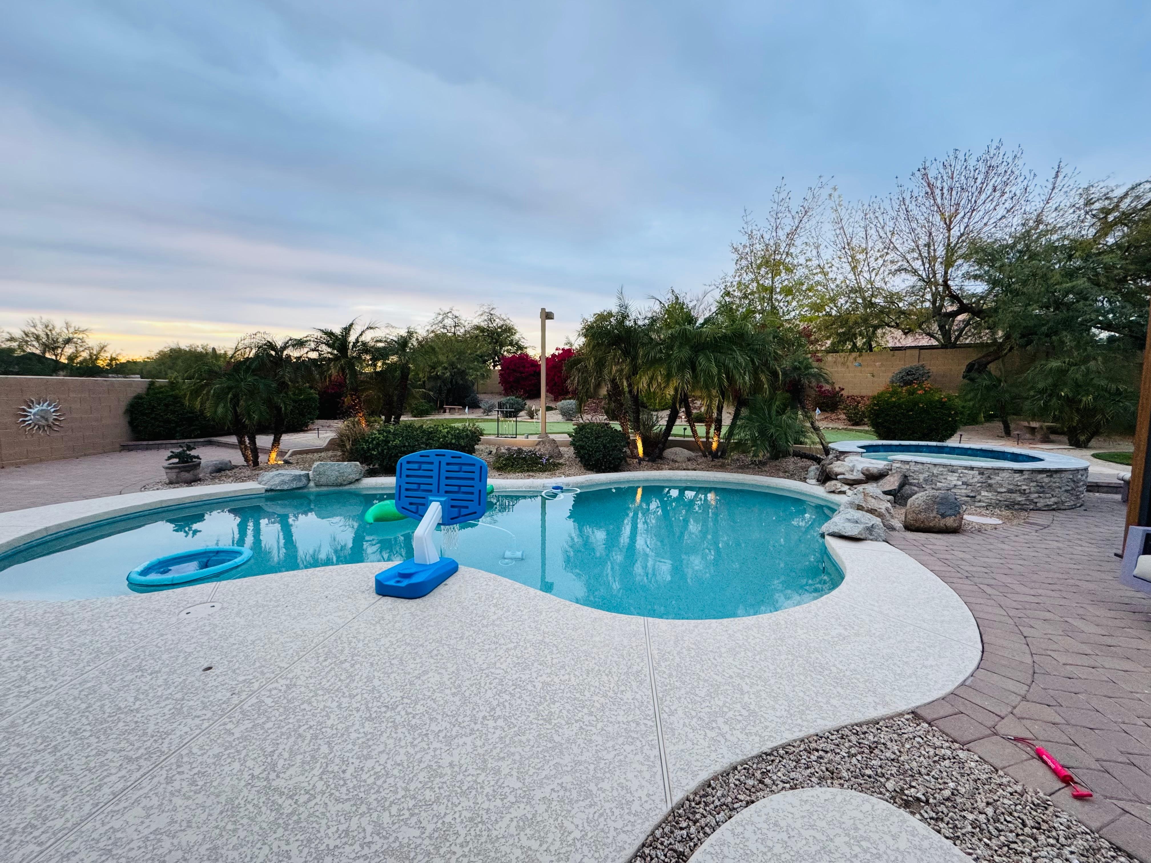 For a desert oasis where you'll never be bored, look no further than this 4-bedroom, 2-bathroom Scottsdale vacation rental! This home will be your private oasis, where you can soak in the built-in spa, cook and dine on the patio, gather around your favorite TV show, and perfect your putting game in the comfort of your own backyard. Opt to venture out, and you'll be just a short drive from the TPC Scottsdale courses, MLB spring training, shops in Old Town Scottsdale, and attractions in Phoenix.