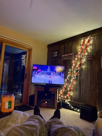 This updated ground floor unit is equipped with larger smart TVs, sound bar with sub-woofer and custom made ski chairs on the deck, convection/air fryer oven.