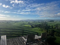 Take it easy at this unique and tranquil getaway. This brand new self-contained studio is perfect for a quiet weekend getaway or a longer holiday stay. Opening onto the deck that has stunning views of the local countryside, from the windmills, to glimpses of Raglan harbour, to Mt Karioi. Situated on a working beef farm in the hills above Raglan, a 15 – 20 min drive to the town centre, or beaches. Get it all – peace and quiet of the country, fun at the beach, the bustle of a seaside town.
