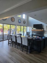 INDOOR LIVING: 6 Smart TVs, electric fireplace, board games, dining table, ceiling fans
