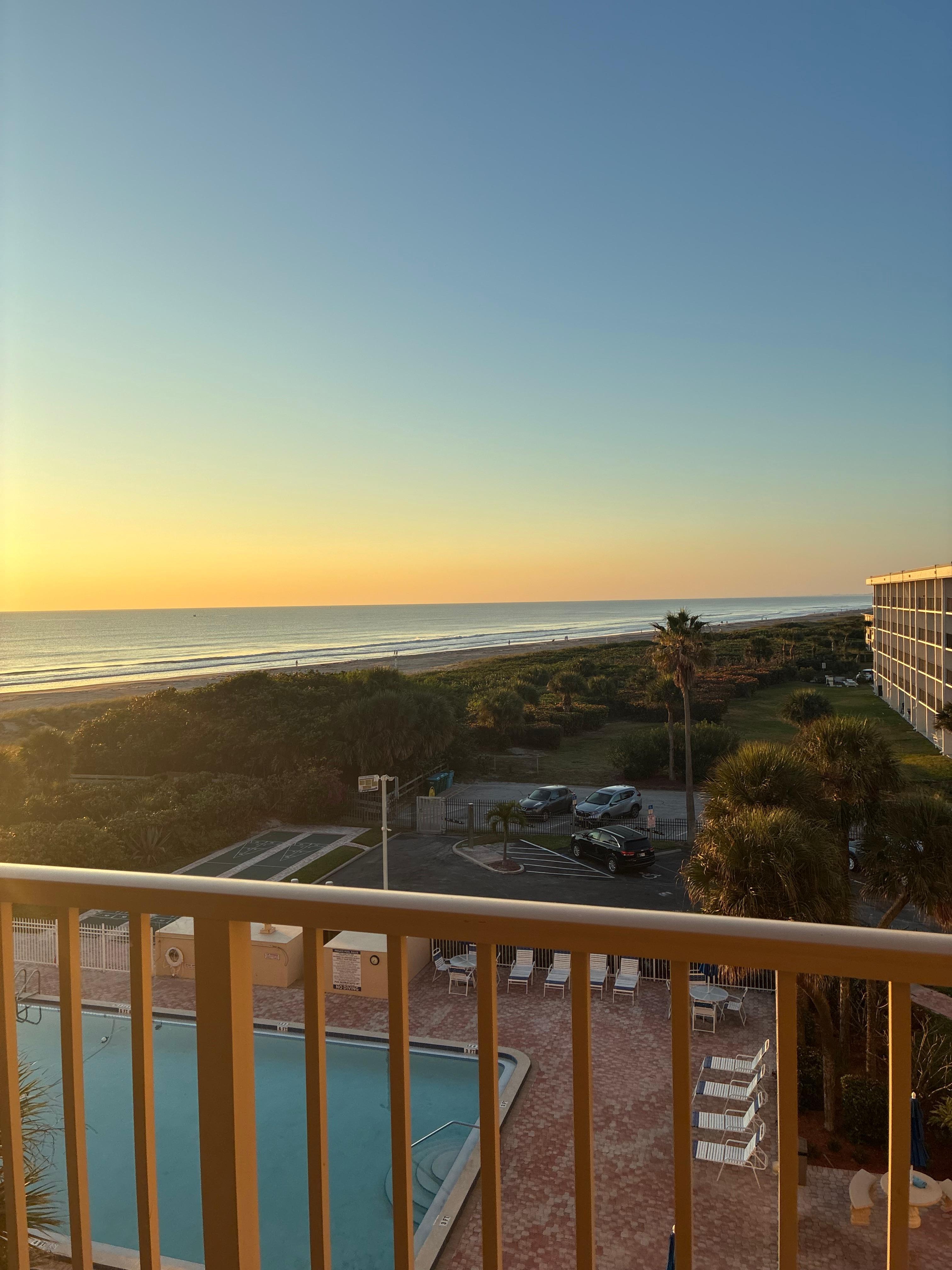 Enjoy this 5th floor direct Ocean-Front condo with sweeping views of the Cape Canaveral/Cocoa Beach shores! From the space coast, to the Historic Cocoa Beach Pier, you can't beat this location. Located on the quiet shores of Cape Canaveral with views of the Kennedy Space Center, the Banana River and the Historic Cocoa Beach Pier. Relax and enjoy this ocean oasis!