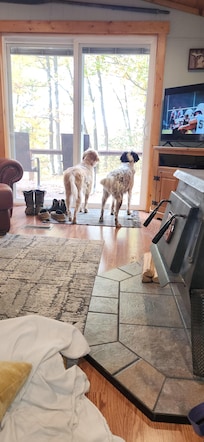 INDOOR LIVING: Smart TVs, board games, books, dining table, ceiling fans, DVD player, wood-burning stove