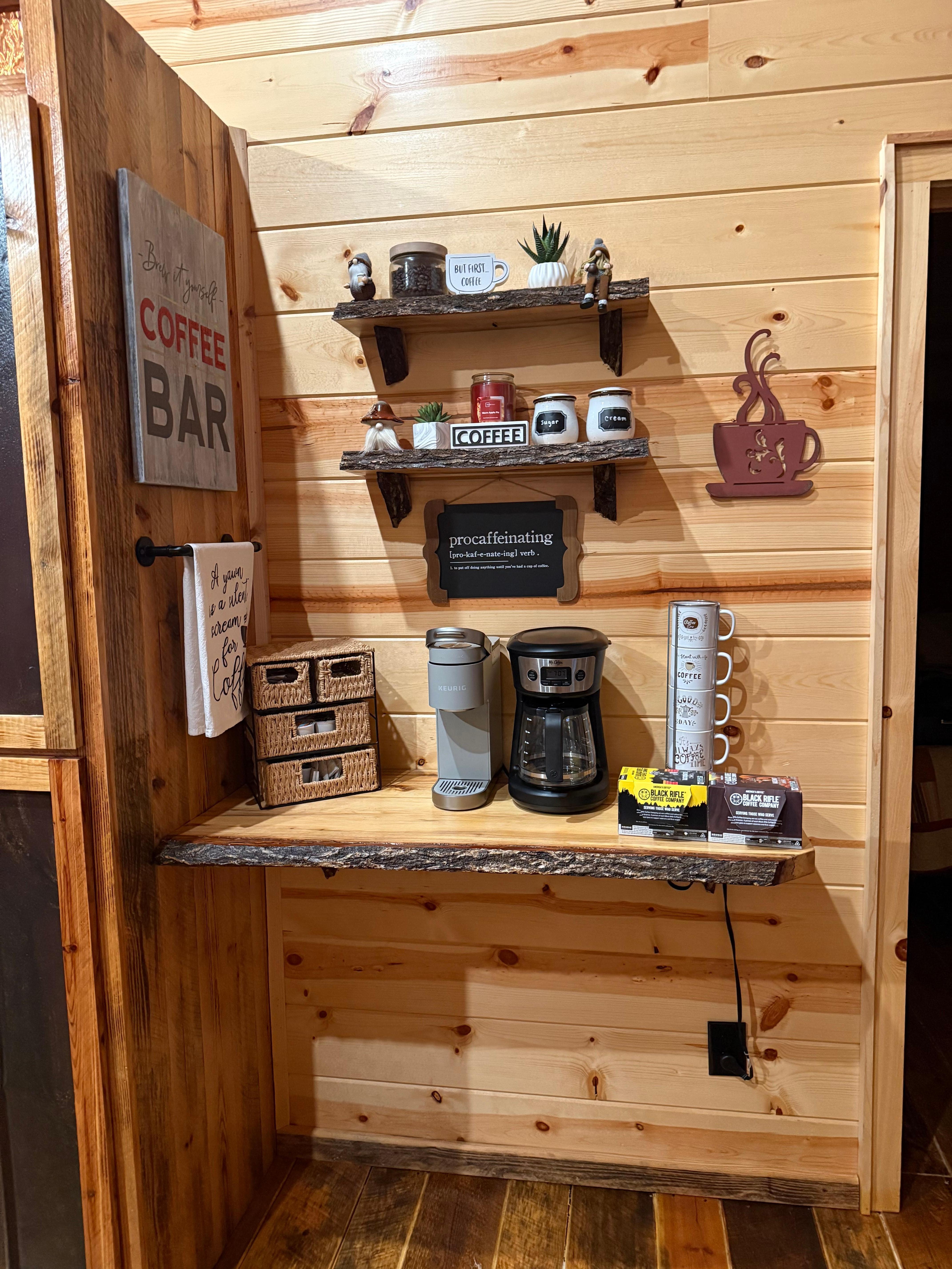 - Coffee station w/ drip & Keurig coffee makers