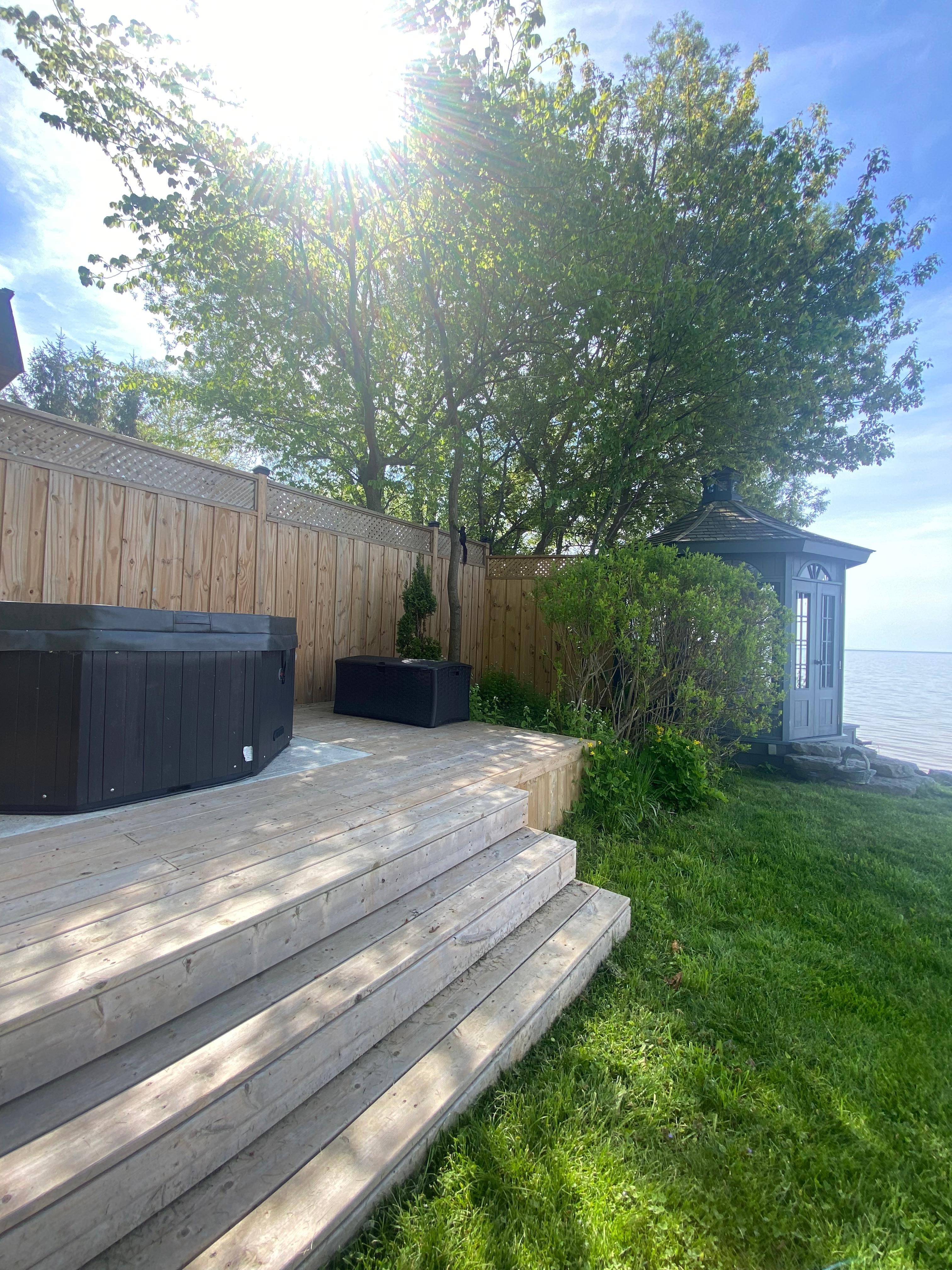 Lakefront bungalow one hour east of Toronto with private Lake Ontario beach within walking distance to scenic Main Street. Enjoy the breeze in the gazebo, sunset views from the hot tub or an al fresco dinner on one of two lake facing patios.