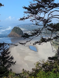 This outstanding custom home sits on a high ridge over the Pacific in the exclusive, gated South Beach neighborhood of Neskowin. That brings you stellar views of the sandy Neskowin beach, iconic Proposal Rock and the north coast down a rugged, tree-studded cliff to the sea. Neskowin Lookout makes the most of its location: almost every room in the home has huge ocean-view windows, and on the beautifully furnished deck you can relax in the hot tub and enjoy the gorgeous scenery.