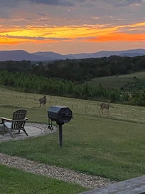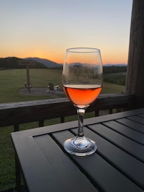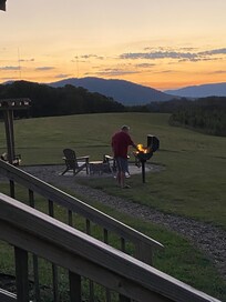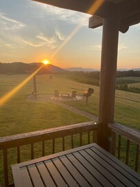 OUTDOOR LIVING: Covered porch, fire pit, outdoor dining, mountain views