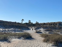 Ocean Villas complex is ideally located within walking distance of the Golden Mile Beach strip with local beach and surf shops, restaurants, ice cream and coffee shops, and activities like putt-putt, and the Pier Park. You will find grocery stores where you can stock up for the week only two minutes' drive down the road. The complex is family oriented and is gated for extra security. Walkways boast manicured grounds and lead to two pools, a heated lagoon pool with surrounding boardwalk, and the beach pool, located just behind this unit. A private boardwalk takes you to gorgeous dunes and white sands where you can enjoy swimming, sunning, surfing, and walking. The ease of going to and from the beach and pool, while taking time for meals, naps, and cooling off, make this condo the perfect place for your next family vacation!