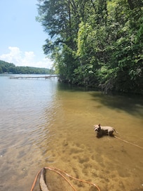 We are waterfront and the walk to the water is flat and easy. You can swim, kayak, canoe, fish, and all from our back yard. There is also a strong and hardy freah stream that feeds into Lake James called Dale's Creek that runs through our land.