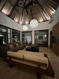 This Jimbaran villa provides complimentary wireless Internet access. 32-inch Smart televisions come with premium cable channels and DVD players. Additionally, rooms include a safe and complimentary bottles of water. A nightly turndown service is provided and housekeeping is offered on a daily basis. Amenities available on request include in-room massages.