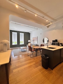 This Montreal aparthotel provides complimentary wired and wireless Internet access, with a Wi-Fi speed of 500+ Mbps (good for 6+ people or 10+ devices). Business-friendly amenities include desks and desk chairs. Additionally, rooms include coffee/tea makers and an iron/ironing board. Housekeeping is offered on a daily basis and change of towels can be requested.