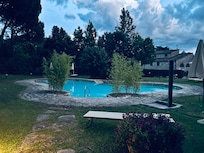 Existe la posibilidad de vivir al aire libre, un jardín con una piscina, así como un área de gran barbacoa. (Compartido con otros apartamentos).