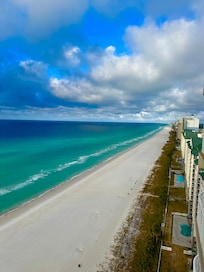Shores of Panama es un complejo de destino completo, que incluye una de las piscinas más grandes de la playa. Su apartamento está frente al golfo directo con una vista sin obstáculos del Golfo de México. SOP es 'U' en forma, y muchos apartamentos se encuentran en el interior de la U, con una vista de la piscina, pero vista del golfo restringido.