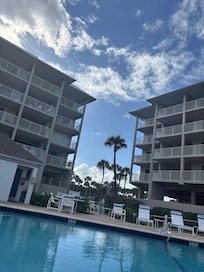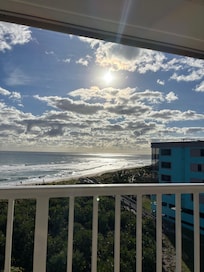 Oceanfront view. Covered parking space near elevator access.