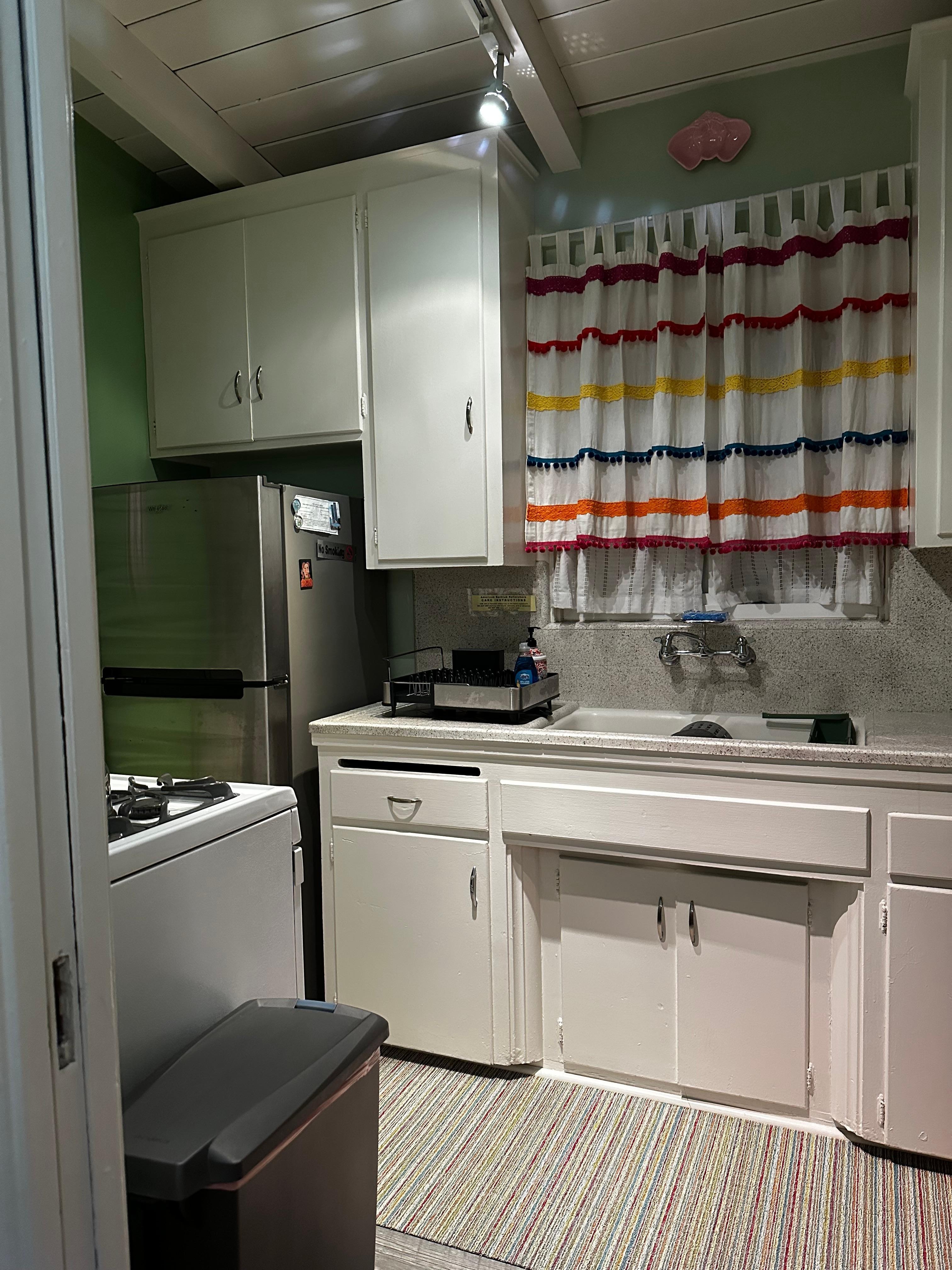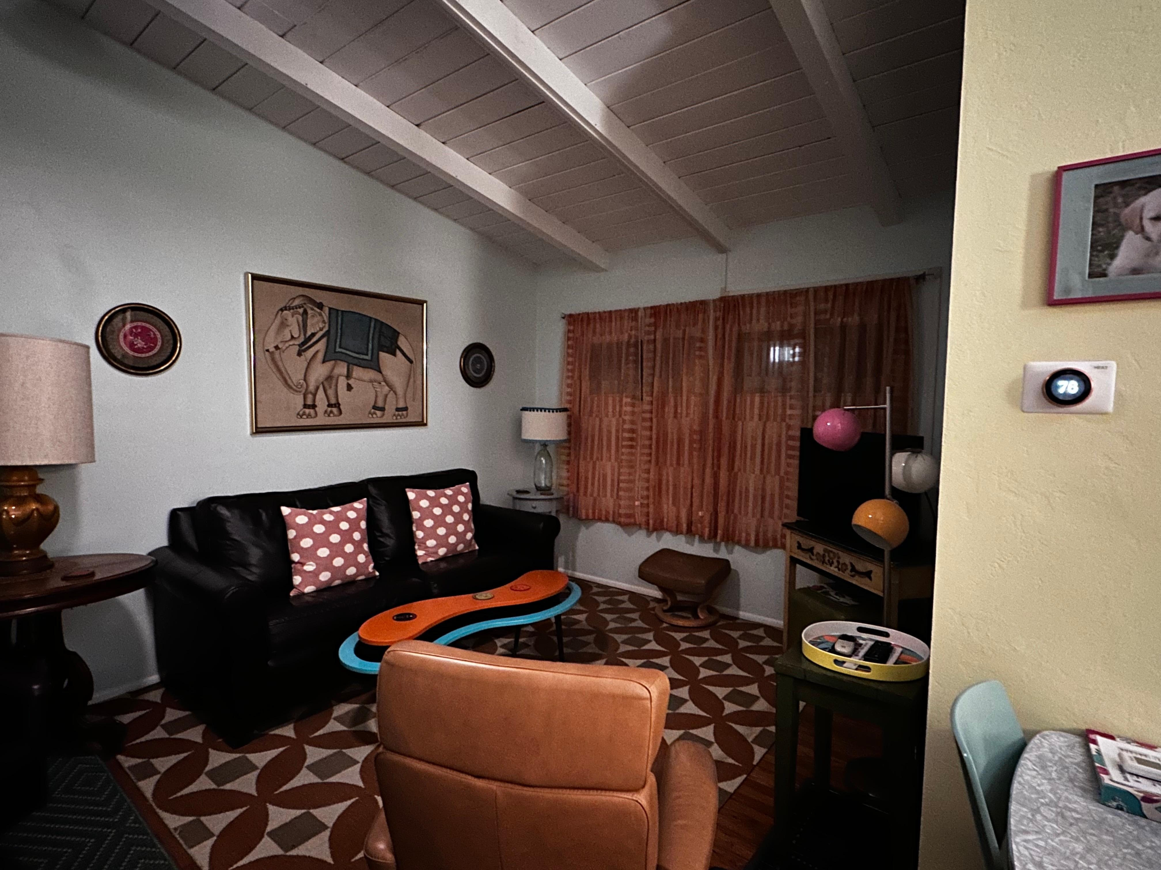 Aproximadamente 550 pies cuadrados en tamaño este lugar se siente bastante espacioso como techos son viga abierta y abovedado.