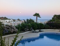 The apartment is air conditioned and fitted to a very high standard with solid oak finishes, en-suite bathroom, shower room, high spec Danish fully equipped kitchen, ample storage and 2 private balconies. Situated within this small low rise gated community with large swimming pool & child's pool, landscaped walled gardens & private gated parking. Both pool & gardens are fully lit in the evenings allowing for romantic dinners on the balconies in the warm evenings