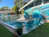 We inherited this property from my dear friend and business partner, John Lach, who passed away in 2015. We could have sold it, but knew it would probably be torn down and another huge party house would go up instead. My partner Olga and I knew what a great little resort it would make, and tried to keep as much of its 1962 charm as possible, like refinishing the terrazzo floors. We put in all new stainless steel appliances & replaced the tubs with low curb showers to get in and out of easier. I really would love to live here myself!