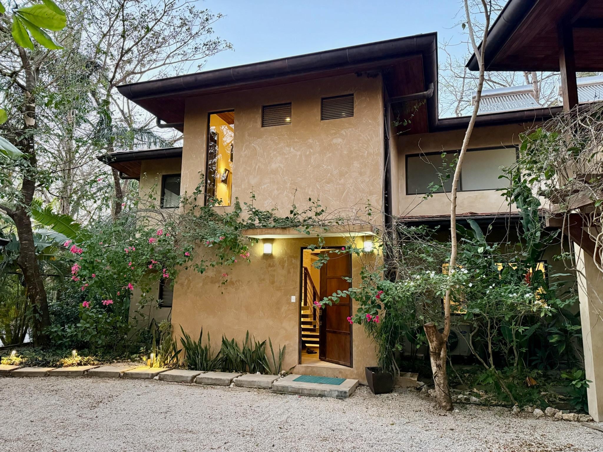 Desde pisos de porcelana hasta accesorios y muebles de alta gama, la casa fue diseñada para el cliente exigente de vacaciones que desea disfrutar de la belleza natural de Nosara, junto con la belleza estética y el confort de una casa de vacaciones moderna. Para aquellos que necesitan estar conectados, la casa está equipada con 5 puntos de acceso inteligente de Google para Wi-Fi rápido y completo.