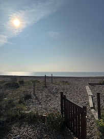 Being on the beach makes this property unique and very safe for children. No fast roads to negotiate just out of the patio doors and onto the beach. Lovely sea views and long seaside walks, sunbathing, eating al fresco are all activities visitors will encounter whilst staying here.