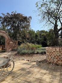 The garden is not enclosed and is surrounded by open farmland.