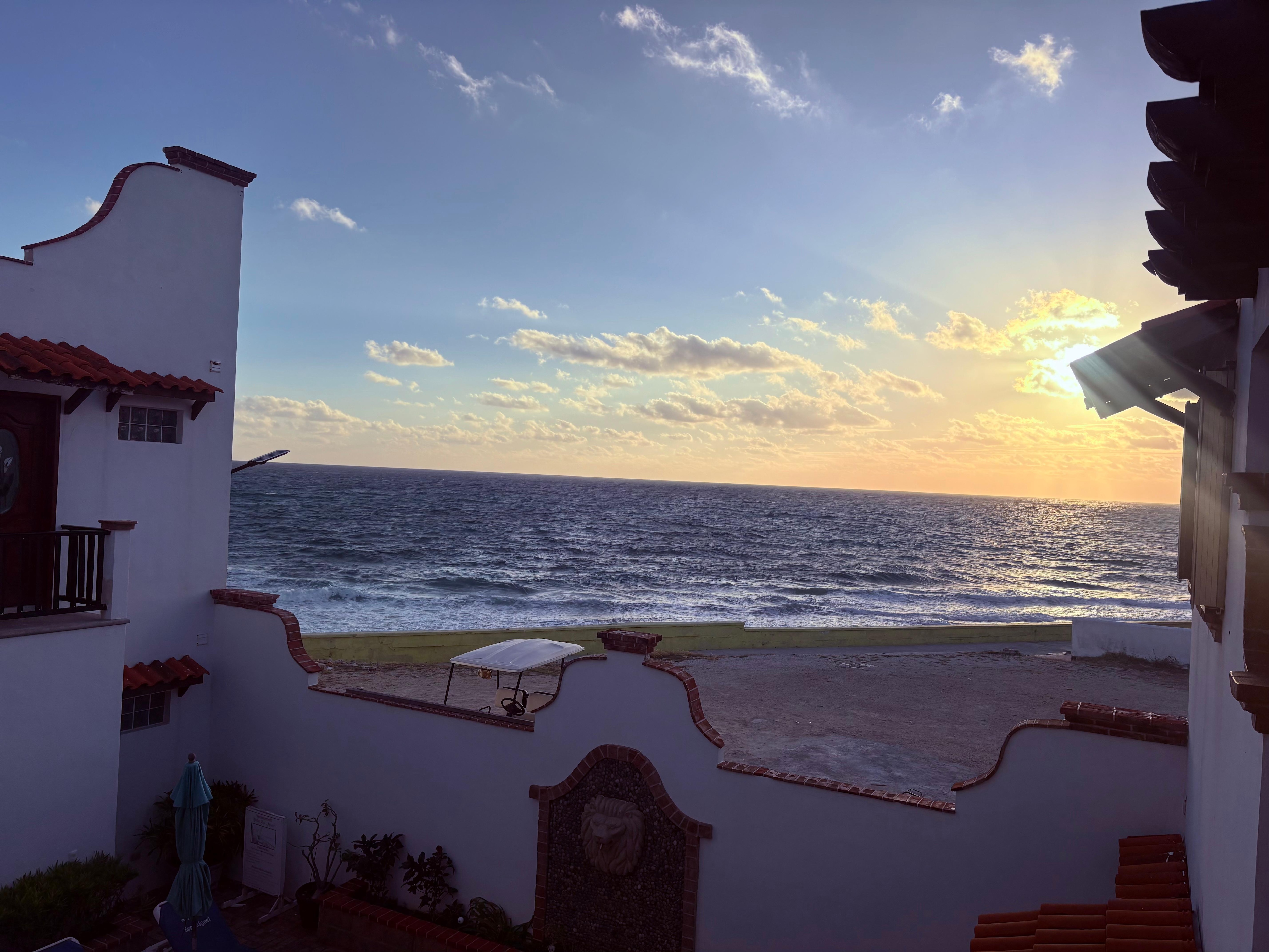 "Saltillo" tiene un gran balcón que da a la zona de la piscina del patio con vistas a las casitas hacia el océano. (la foto de portada se toma desde el balcón de "Saltillo"