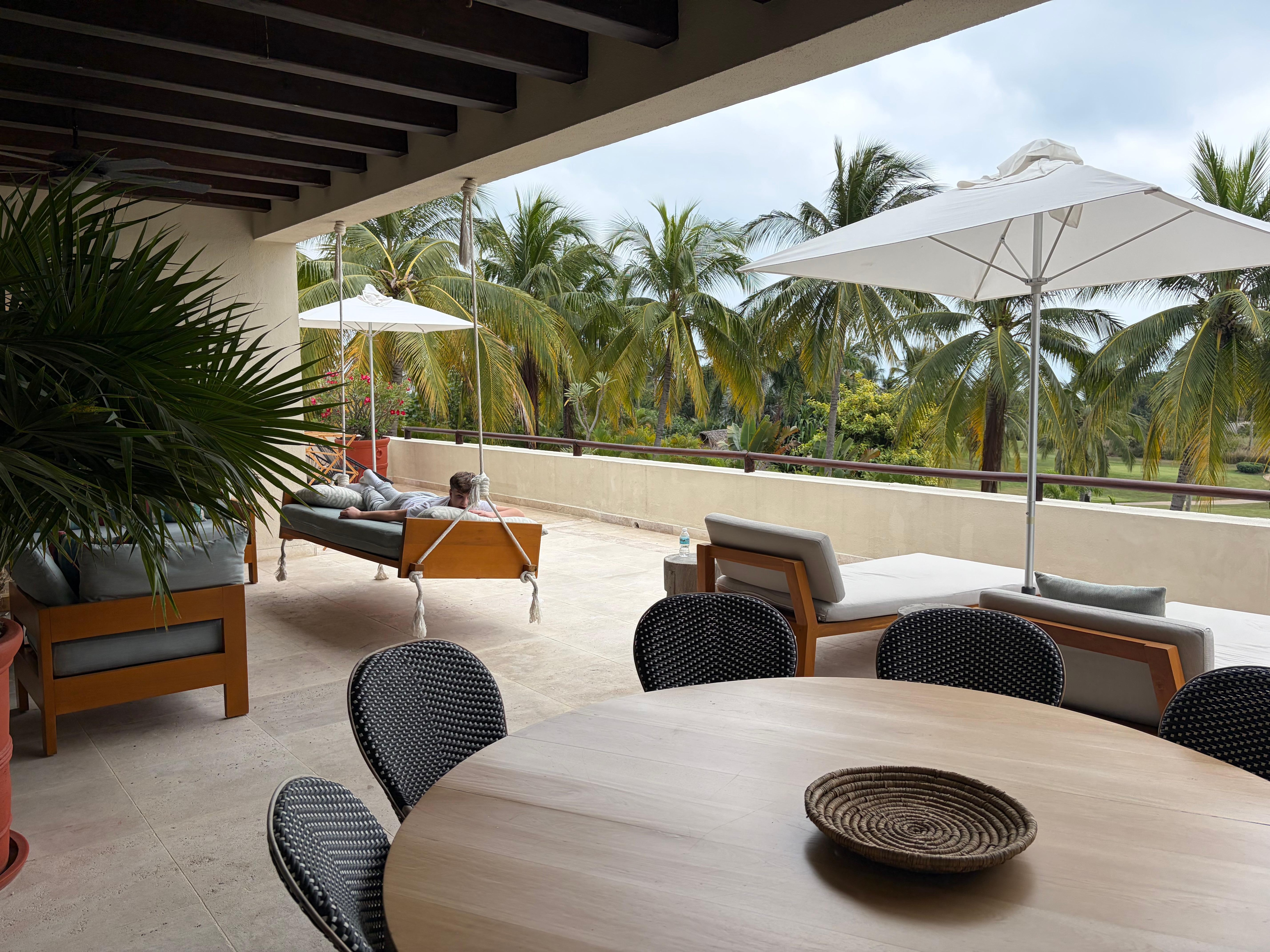 Ubicado dentro de la exclusiva comunidad cerrada de Punta Mita y parte de un complejo de condominios boutique, Condo Palma Azul es un condominio sereno y bellamente decorado con vista a la piscina y a uno de los dos campos de golf Jack Nicklaus disponibles en el sitio. Relájese disfrutando de la vista en una de las 3 terrazas privadas del condominio mientras disfruta de una copa de vino o su Nespresso por la mañana. Disfrute del acceso a 3-4 clubes de playa privados (incluido St Regis), cada uno con una experiencia de playa, vista y servicios diferentes. ¿Te sientes aventurero? Mientras esté en los clubes de playa, ¿por qué no perfeccionar sus habilidades de surf, vela o surf de remo, todo el equipo disponible para que usted y su familia lo disfruten? Después de una mañana disfrutando de la playa, puede ir al gimnasio, jugar al tenis o dar un paseo en bicicleta o correr por los numerosos senderos escénicos en bicicleta de Punta Mita, para poner fin a un maravilloso día, deleitarse con una deliciosa comida preparada por un chef profesional o un tradicional Cocinero mexicano sin tener que abandonar el condominio.
