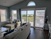 Bienvenido a Sunset Dream East: una propiedad que admite mascotas. Esta casa brillante, hermosa y limpia tiene vistas panorámicas del océano desde la sala de estar principal. Esta casa tiene un plan de piso inverso con la sala de estar, cocina totalmente equipada, dormitorio de matrimonio y baño completo en el piso superior (3er). La luminosa sala de estar tiene vistas generosas, muchos asientos, un televisor de pantalla plana de 42 "completo con cable, un reproductor de DVD blue-ray y estéreo. La cocina cuenta con encimeras de granito y electrodomésticos de acero inoxidable. Hay una gran variedad de utensilios de cocina, pequeños electrodomésticos, especias y utensilios de cocina.