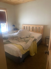 La cabina es cálida, con calefacción eléctrica y una estufa de leña en la gran sala. El dormitorio principal tiene una cama queen size y el loft tiene 1 cama queen y 1 colchón inflable queen. La cabina cuenta con lavadora y secadora, además de cocina totalmente equipada para los cocineros. Un pequeño cobertizo puede albergar sus móviles de nieve. Mucho espacio de estacionamiento para remolques. No poseas un móvil para nieve, llama a Vermilion Rentals, tienen algunos para ti.