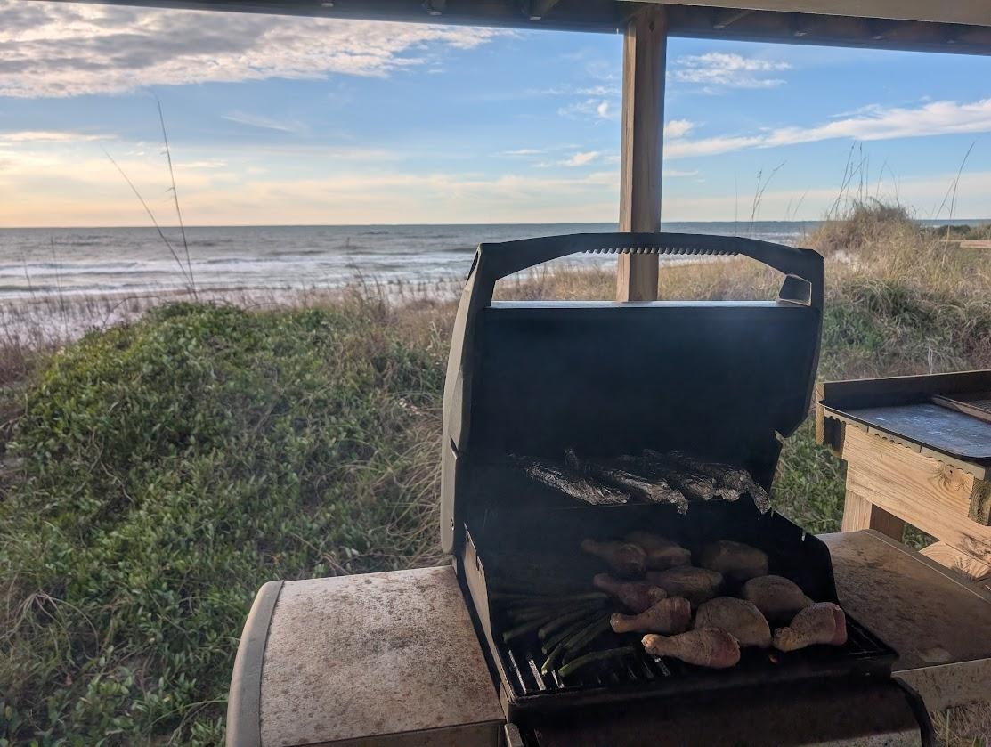 Disfrute de su café de la mañana o una bebida al final de la tarde en nuestra terraza frente al golfo, completa con un porche, barra de desayuno y puerta de la terraza con cerradura (para evitar que los pequeños y los perros deambulen por la playa sin usted).