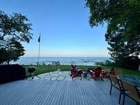 The main living room and dining rooms have floor to ceiling windows which give you an uninterrupted view of the lake on one side and the woods on the other. The master bedroom also faces the lake. Huge update taking place this winter. New floors, paint, furnishings, bathroom, and ceiling fans updates. And now we have central air conditioning which almost no other homes on the beach have. Global warming is real and you will be happy to be able to turn the AC on on hot days and nights. Rent now before it's too late!