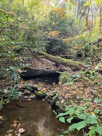 Encantadora cabaña de 2 dormitorios y 2 baños en un entorno MUY privado en 12 acres con un riachuelo.
