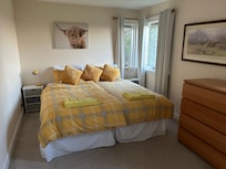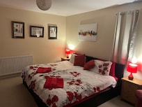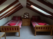 El alojamiento consta de 2 habitaciones dobles grandes, cada una con dos camas individuales. Cada habitación tiene armarios empotrados y mucho espacio de almacenamiento. Si realmente se requiere, hay dos camas individuales más en una conversión de loft en el piso de arriba, ¡a través de una escalera Ramsey para los más ágiles!