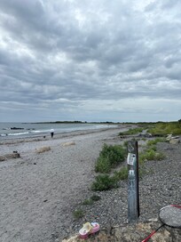 This is a very very private location at the end of the road on a private island. Located on 6 acres that back up to a Federal reserve that includes Fort Foster. You can take walking trails from the back of the house all the way to Fort Foster Beach, one of the top 10 beaches in all of New England. Walking distance to our private rocky beach and Crescent Beach which is sandy.