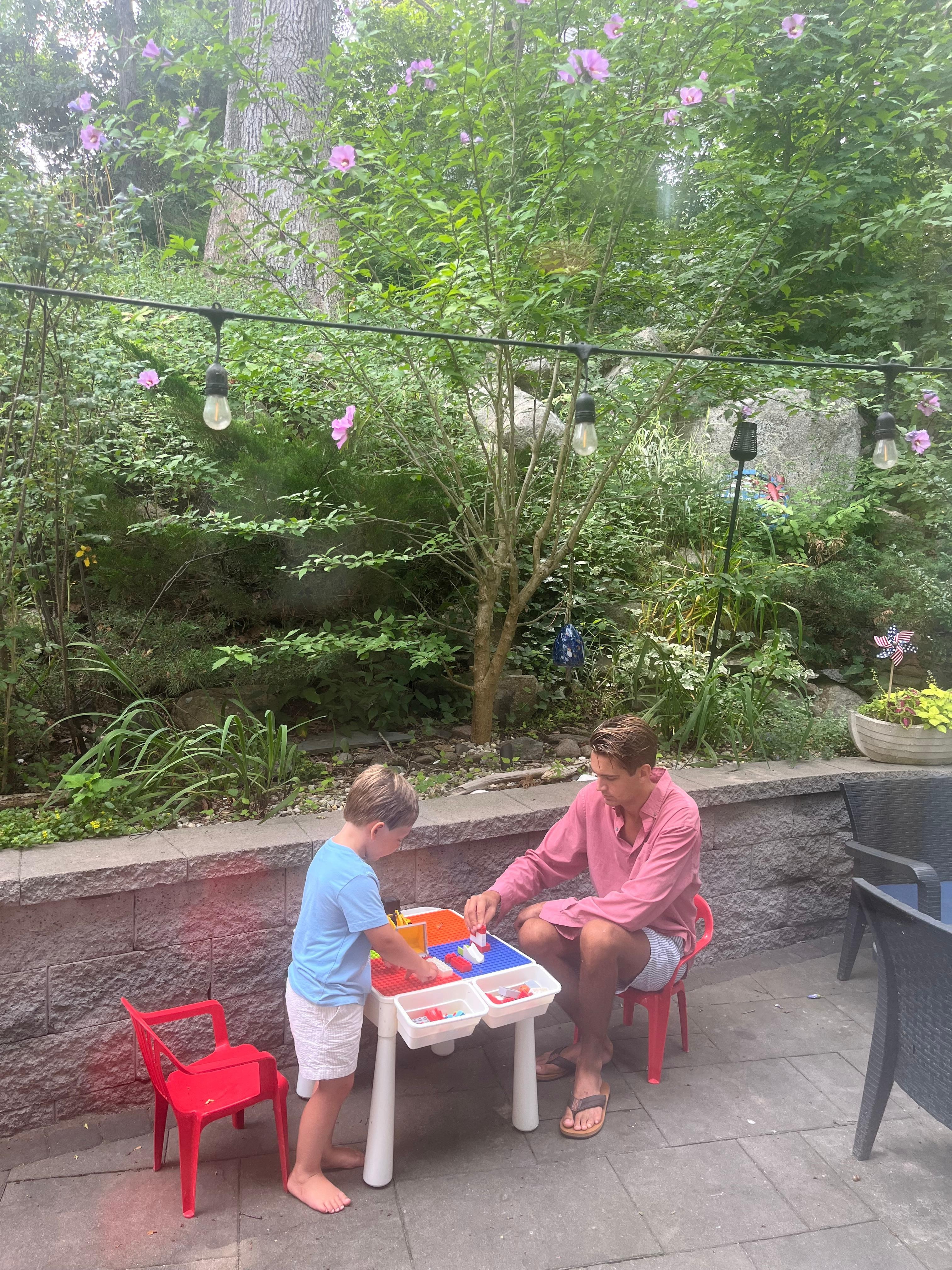 Fuera de la cocina hay un paseo al patio trasero. Este acogedor patio de dos niveles cuenta con muebles de exterior, una barbacoa, una lámpara de calor o fogata al aire libre (según su preferencia) y una ducha al aire libre.