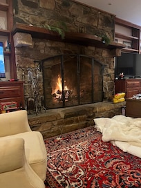 Its an 'any season' house, the great room in the winter is large and comfortable with the kitchen at one end. The stone kitchen at the end of the porch is heaven in summer, with a wall of windows and cool stone floors. Its a place to bring people together, and explore the countryside or just stay on the property. Friends have come out with extensive plans, but have decided to swim, read and sit on the porch, saying 'we'd rather stay right here...'