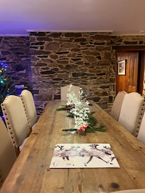 Cuando vea la mesa de caballete y la pared de piedra interior de la cocina y el fuego rugiente, la Casa del Molino es perfecta para la calidez y la unión.
