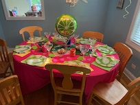 Bar completo en el primer piso para los adultos: ¡solo traiga sus bebidas favoritas! Coma en la cocina con encimeras de granito y mesa para cuatro. Comedor separado que está abierto a los asientos de la cocina 6-8. Hermoso patio con mesa de sombrilla y asientos, además de sillones. Los jardines también cuentan con un aro de baloncesto y entrada para estacionamiento fuera de la calle de hasta 4 autos.
