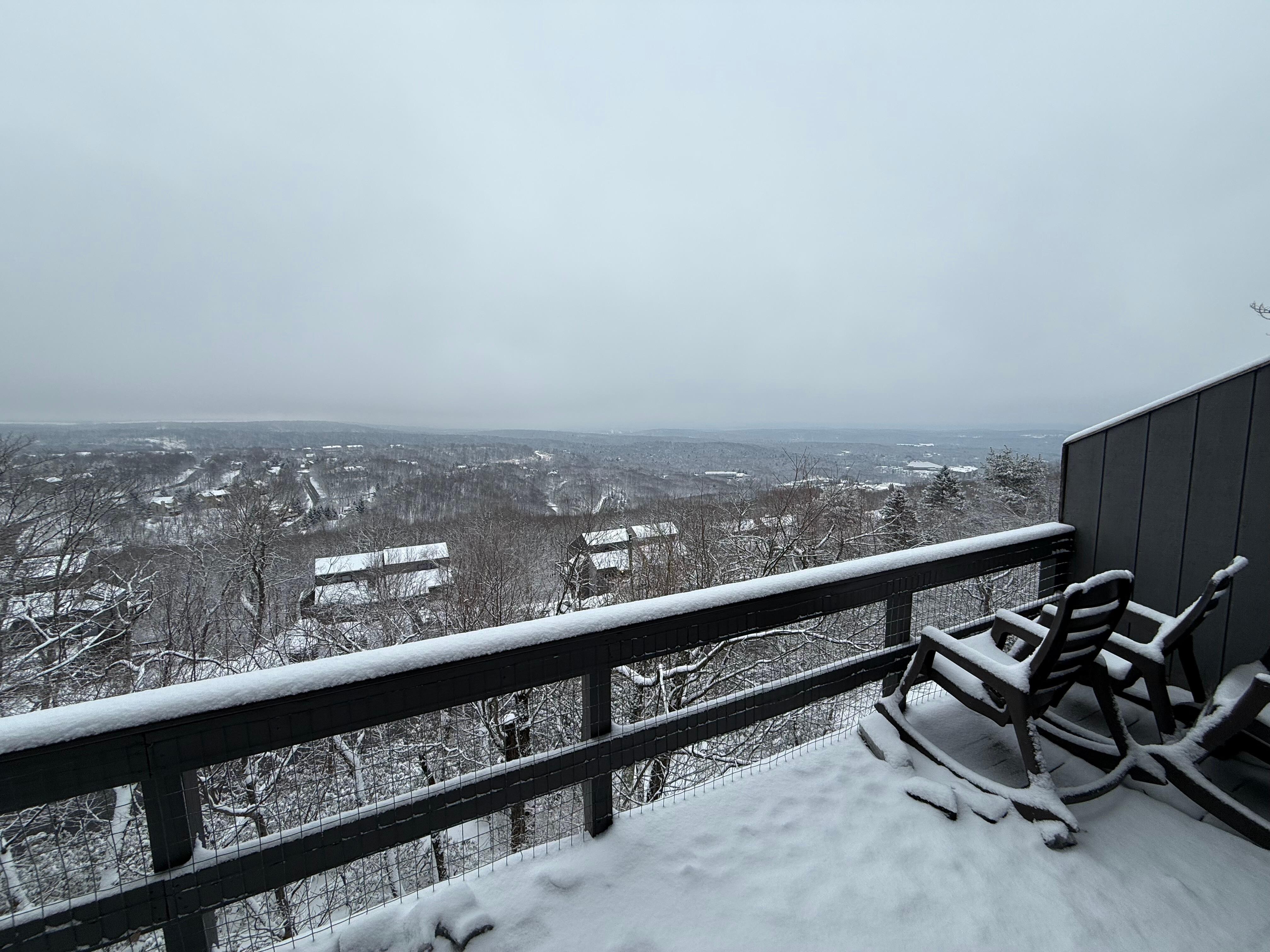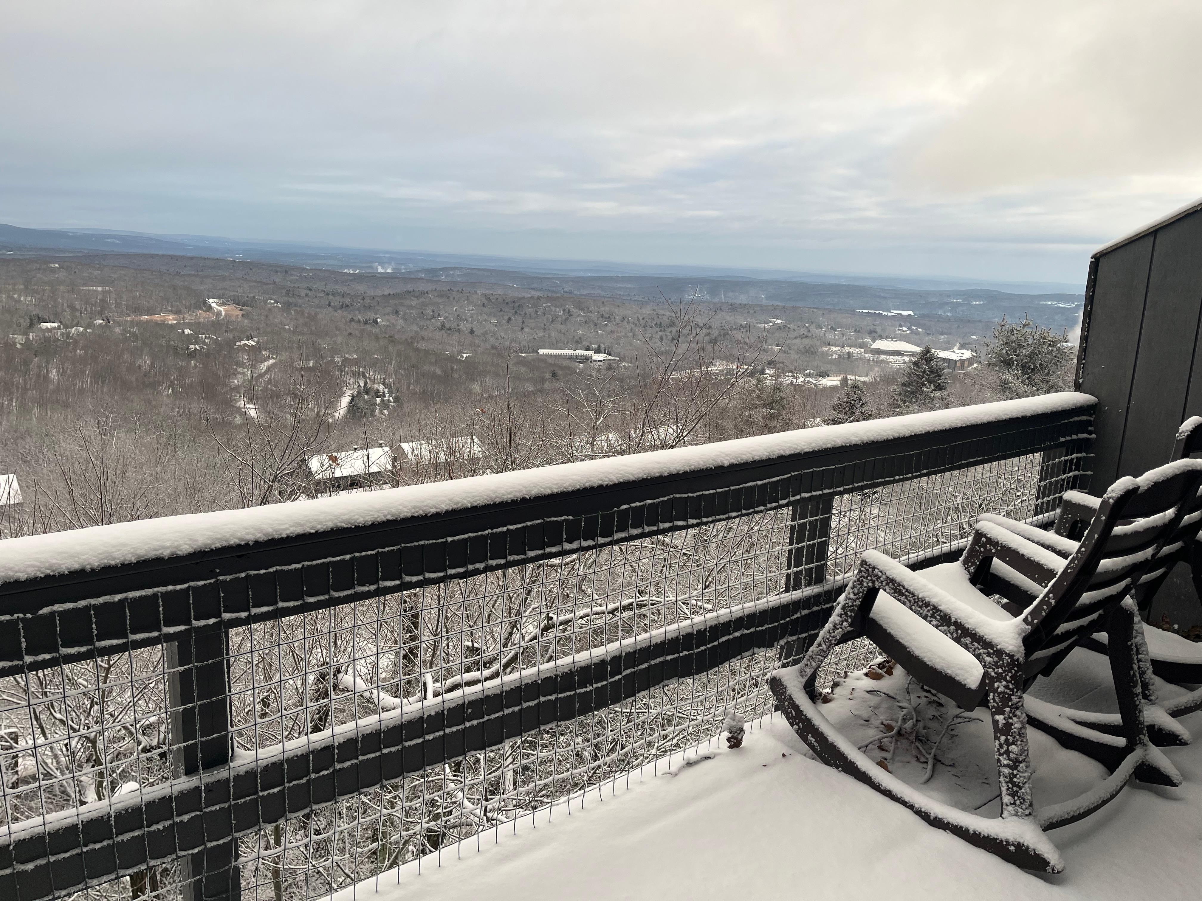 Hay tres cubiertas. Las cubiertas traseras tienen vistas del valle rodeado por otras montañas. Se dice que en un día despejado se pueden ver 85 millas, a las montañas Catskill en Nueva York y al este, el monumento High Point en Nueva Jersey. La cubierta delantera está amueblada con una mesa de picnic, sillas y una parrilla de gas.