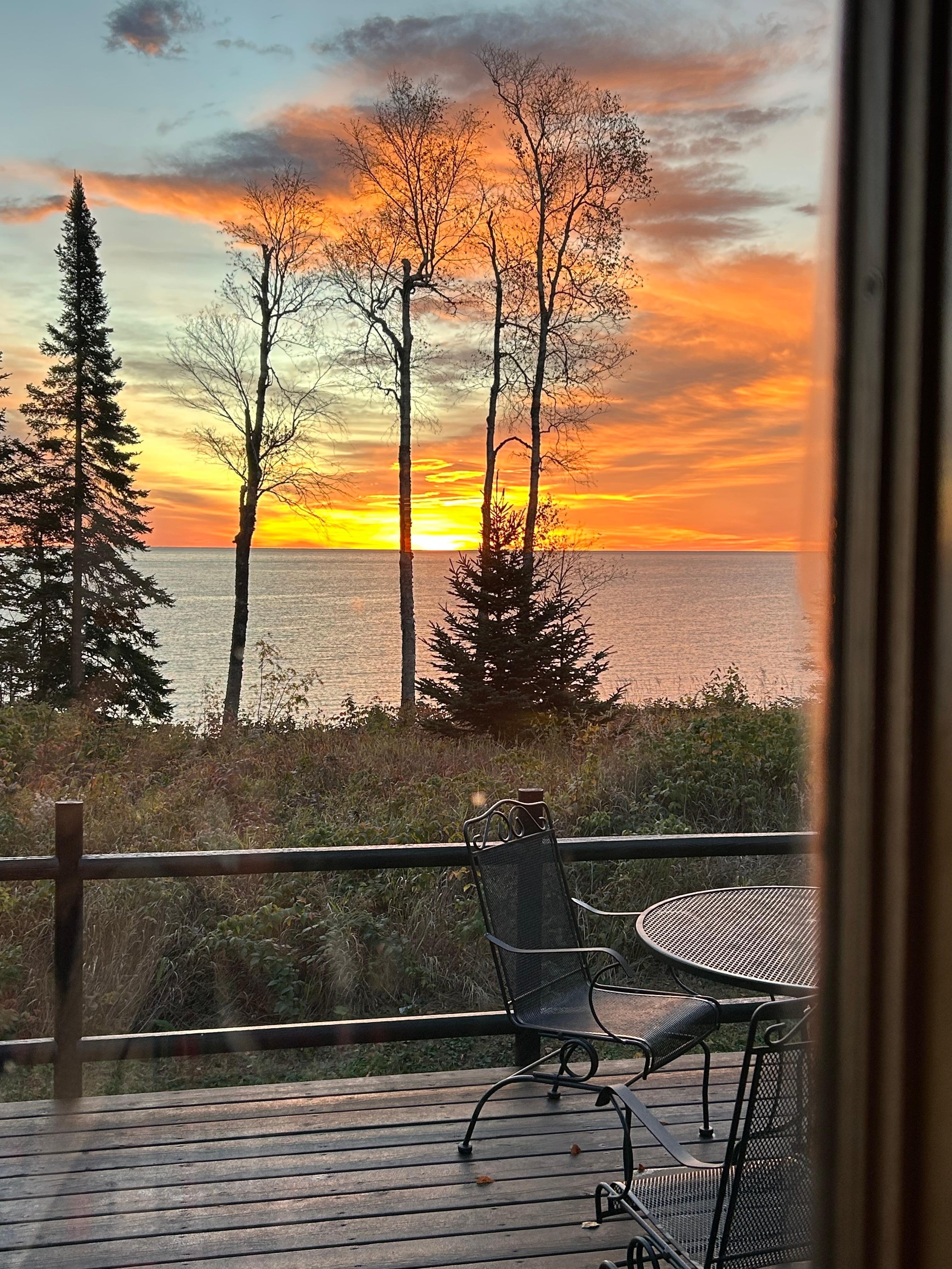 Hay unas vistas increíbles al norte de los acantilados de la cabeza de Palisade. Estos acantilados alcanzan 350 pies de alto y son uno de los favoritos de los escaladores de roca. Puedes oír las olas del lago estrellarse contra los acantilados de roca cornisa a sólo 70 pies de distancia de la cabina. Los amaneceres sobre el lago son espectaculares; en la noche, podría ser capaz de ver la aurora boreal.