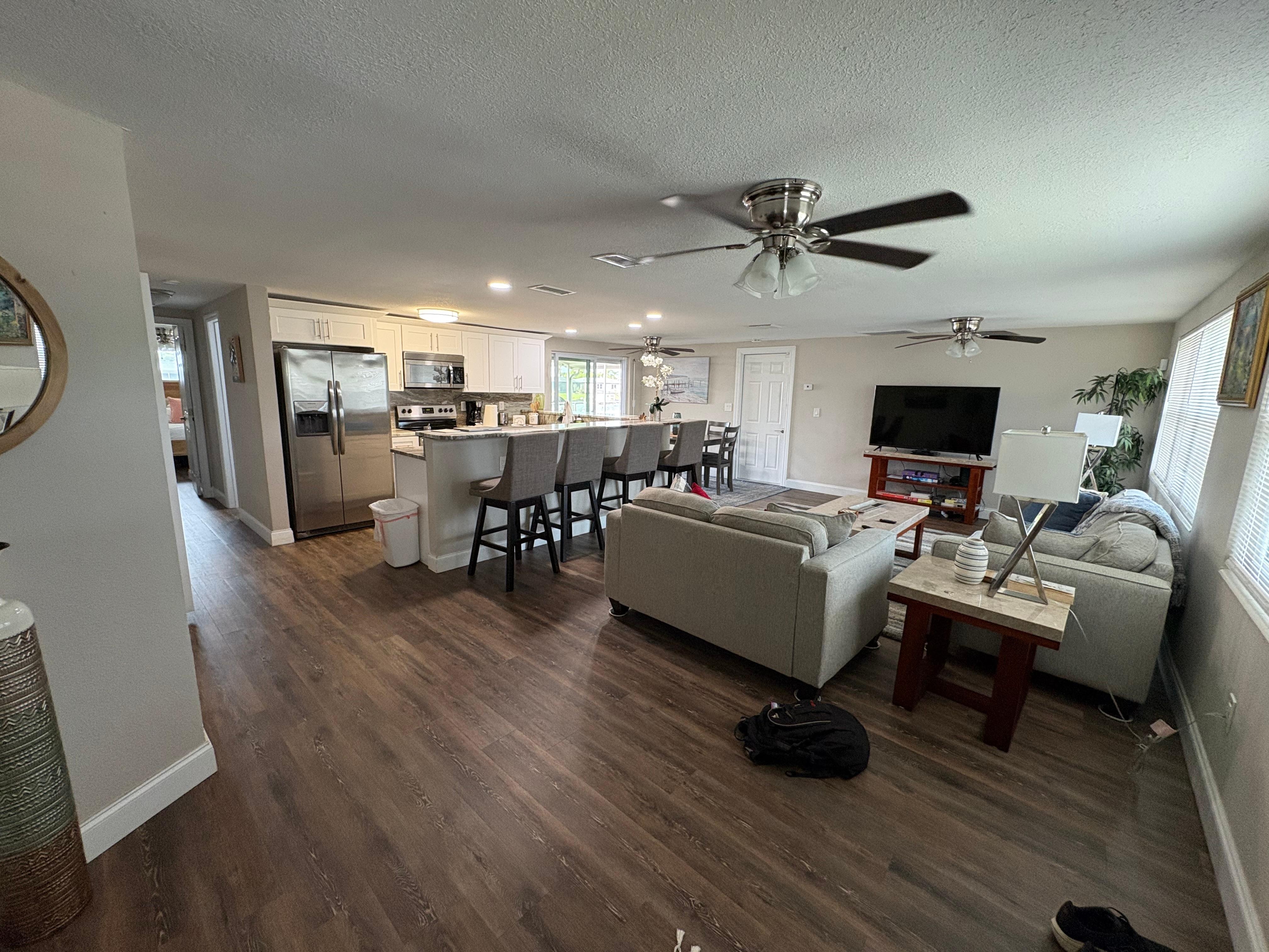 Welcome to our model home, This home is located in beautiful Holiday Florida. The home is located near many parks with a beautiful nature and sunsets. The home has a 3 bed , 2 bath sleeps 6 people comfortably with 2 queen beds and two twin beds. House is on the water in a canal with gators , turtles and lots of birds and you can enjoy the sunset right from the screened porch. As amenities are including internet, wifi, full kitchen with all needed utensils, soap , shampoo and conditioner in the bathrooms and set up with a modern touch. Our U shape kitchen with granite countertop can easily entertain a large party for lots of fun.