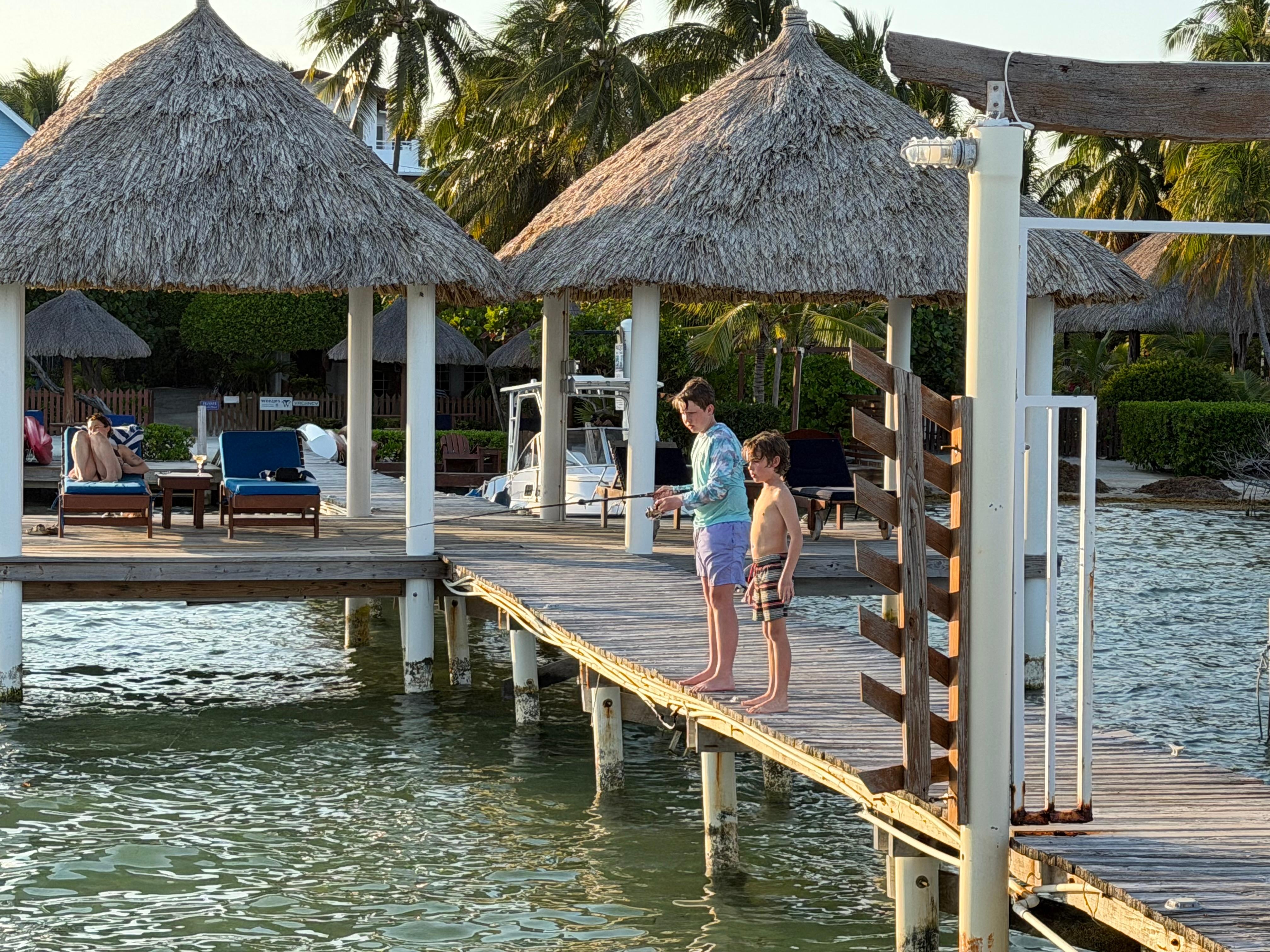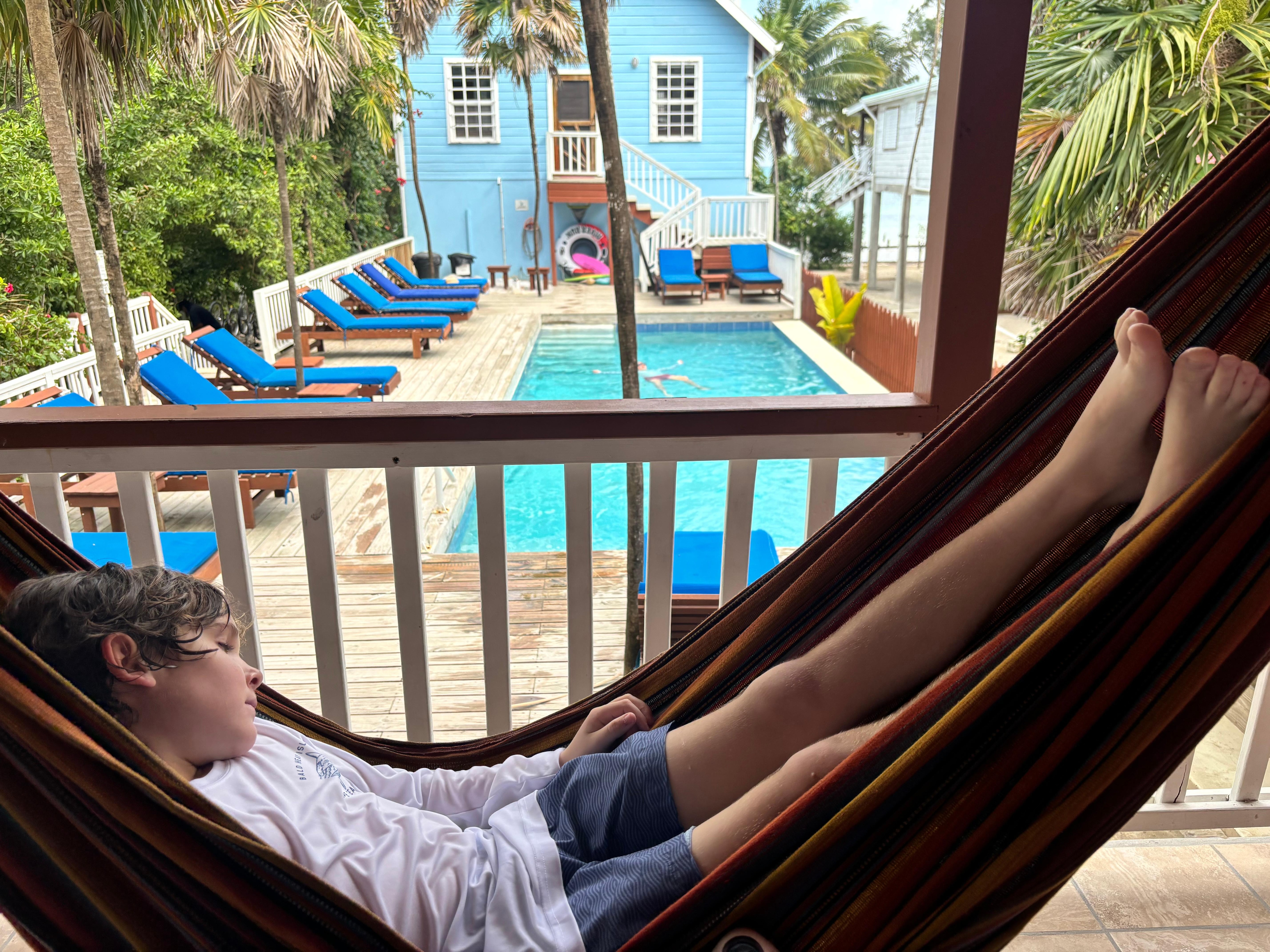 Terminado en junio de 2014, Barbara's Beach House representa la segunda fase del edificio que también conforma Laura's Lookout y Sandy's Secret y Palmetto Garden Cottage. Ubicada en el West End de nuestra piscina privada, Barbara's es una casa de tres habitaciones, situada perfectamente para garantizar que pueda disfrutar de lo mejor que nuestro tranquilo y apartado lote tiene para ofrecer, al mismo tiempo que tiene fácil acceso a la pista de aterrizaje o al pueblo principal de Caye Caulker. que está a solo 5-10 minutos en bicicleta oa 10-15 minutos a pie. El interior de Barbara's tiene un ambiente tradicional de isla, construido con las hermosas maderas duras por las que Belice es conocida. Los pisos, el techo y los muebles reflejan esta artesanía, un complemento perfecto para las palmeras y el sol afuera de su puerta. El diseño funciona para una familia o un grupo de amigos y tiene dos habitaciones con camas queen y un baño completo en la planta baja; una Master Suite más privada arriba, con dos camas individuales que se convierten en una cama king si lo prefiere, nuevamente con su propio baño completo. Todas las camas tienen colchones con cubierta tipo almohada y son muy cómodas, las sábanas cuentan con 400 hilos y las toallas y toallas de playa son abundantes, gruesas y exuberantes. Si es necesario, hay colchones adicionales para aquellos que prefieren no compartir camas. Cada habitación tiene su propio aire acondicionado, completo con un control remoto. La sala de estar cuenta con un plano de planta abierto que incluye una cocina moderna, provista de cualquier electrodoméstico que pueda necesitar, hay lavadora y tendedero y acceso a una secadora si el clima no coopera. El área de comedor y sala de estar tiene un televisor de pantalla plana, biblioteca de películas, wi-fi y juegos. Al salir de la casa, pasando por la cubierta frontal que cuenta con vistas al océano y hamacas y sillas para relajarse, baja unos pocos pasos, corriendo directamente hacia la piscina. Disponible solo para nuestros huéspedes. Hay una variedad de dispositivos flotantes para que te relajes y la piscina está hundida en una terraza de madera que incluye palmeras originales para el lote y múltiples tumbonas para tomar el sol. Al girar a la derecha, lejos de la casa, se encuentra con nuestra zona de playa que se adentra en el mar. Utilizable como una cancha de voleibol o un área relajante para tomar el sol, continúa directamente en nuestro recientemente renovado muelle de 300 pies. Con tres entradas separadas al agua debajo, hay espacio para atracar un bote (útil para viajes de snorkel o una aventura al continente de Belice), 6 vainas que se extienden hacia afuera para obtener más espacio y una palapa al final del muelle si lo necesita sombra. ¡Sería difícil encontrar un lugar mejor en la isla para relajarse o ver el amanecer sobre el arrecife de fama mundial, a apenas una milla de distancia! Barbara's, así como todas nuestras propiedades, se construyó teniendo en cuenta la seguridad. Con protección en todas las ventanas del primer piso, solo hay una entrada a la casa, equipada con una alarma. Además, tenemos un guardia de seguridad las 24 horas. Nuestra oficina está abierta todos los días de 9:00 a.m. a 5:00 p.m., por lo que siempre hay alguien para ayudarlo con lo que necesite. Las bicicletas están disponibles para alquilar a us $ 5. 00 por bicicleta, por día.