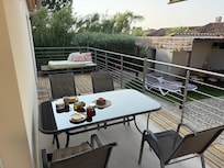 - Una terraza, zona de jardín, barbacoa, piscina (privada), mesa de ping-pong, 3 bicicletas, lugar para autos (privado en la propiedad), puerta con control remoto.