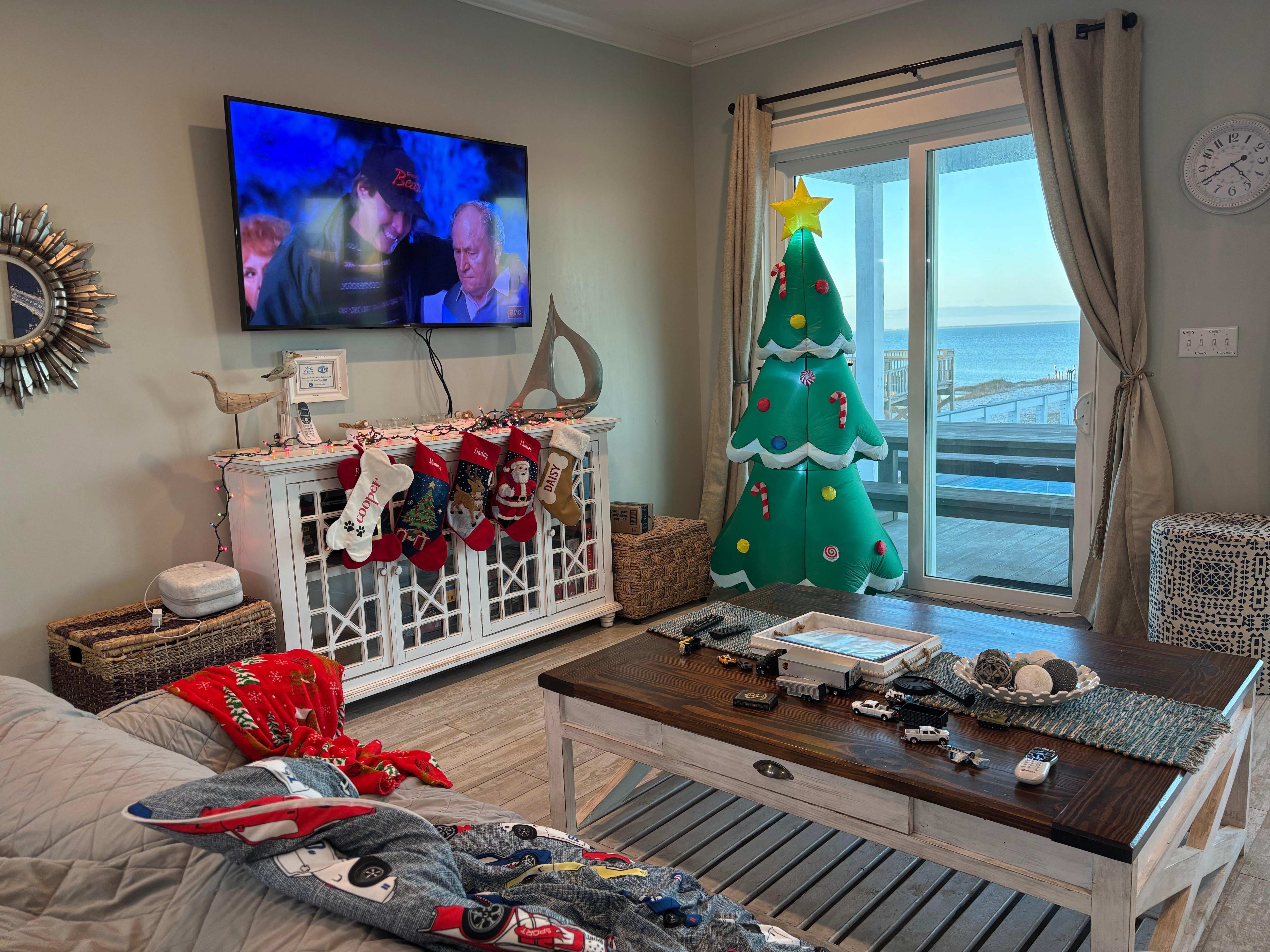 Diseñado para facilitar su uso y para maximizar las hermosas vistas desde cada lado de la casa, le encantará el plano de planta abierto en Cherish the Moment. La gran sala central cuenta con una cocina grande y bien equipada con todo el equipamiento que esperas y más, incluida una bonificación bajo la máquina de hielo, el procesador de alimentos, la olla de barro y la licuadora. Una gran mesa de comedor se encuentra justo al lado de la cocina y la isla de la cocina ofrece asientos adicionales. La sala de estar frente al mar tiene múltiples puertas corredizas de vidrio para maximizar la vista fantástica, amplios asientos cómodos y un televisor de pantalla plana grande con Dish Network y un reproductor de DVD.