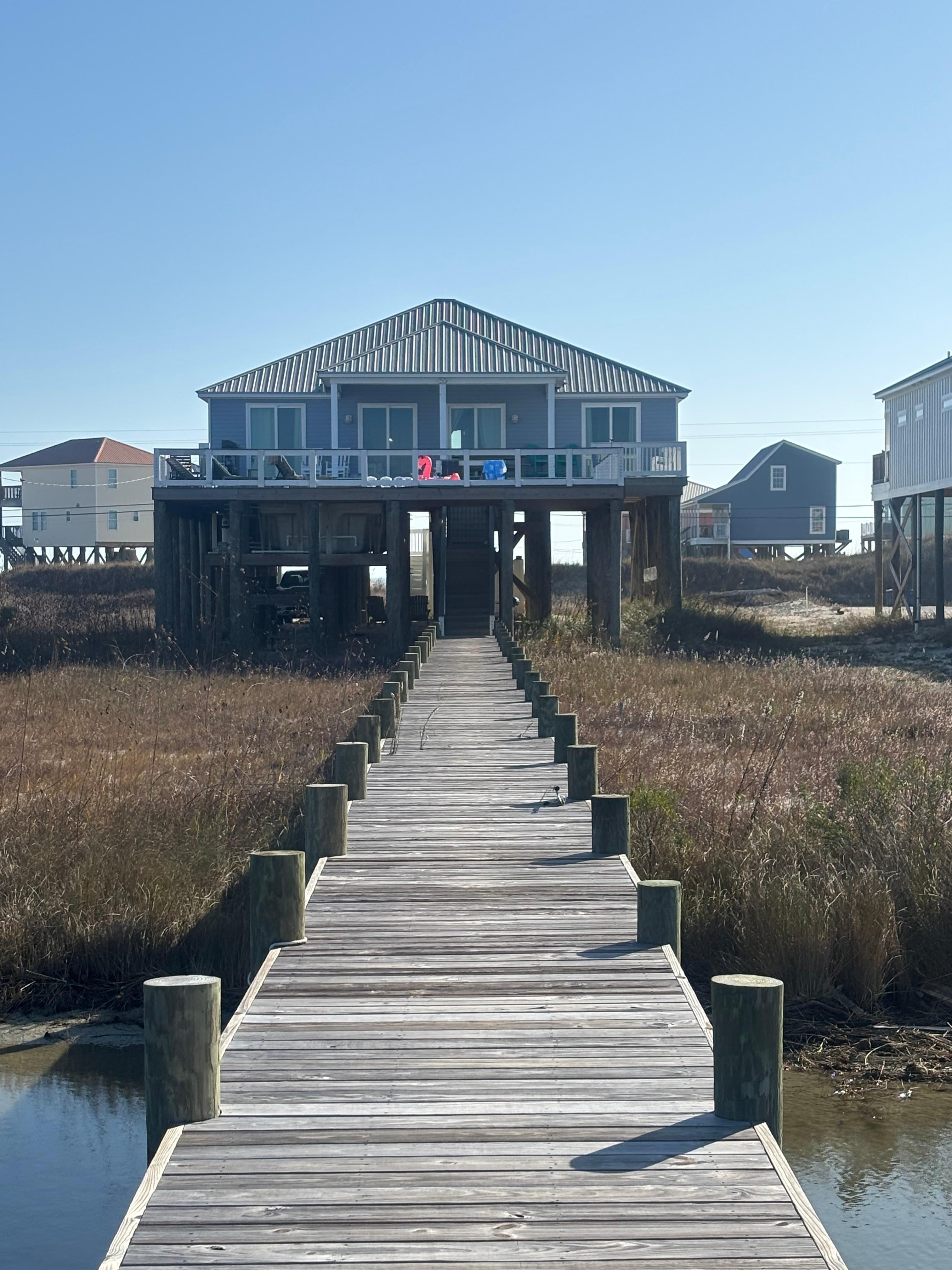 Su familia apreciará cada momento que pasen juntos en esta hermosa casa frente al mar. Cherish the Moment está ubicado a lo largo de la hermosa costa norte de la isla, con una amplia vista frente al mar del Mississippi Sound y además fantásticas vistas de la playa del Golfo. La increíble vista de la puesta de sol no se debe perder! Las grandes cubiertas abiertas y cubiertas están ubicadas en la costa y en el lado del golfo de Cherish the Moment, y ambas cubiertas están bien equipadas con amplios asientos. Relájese lejos en los columpios colgantes ubicados en la cubierta cubierta con vista al golfo y debajo de la casa o recuéstese en un sillón en la cubierta norte frente al mar y tome el sol. Las opciones de comidas al aire libre incluyen una mesa de picnic a la sombra debajo de la casa para bocadillos rápidos después de nadar y una mesa de comedor ubicada en la costa norte de la cubierta. Cherish the Moment tiene una maravillosa laguna privada y una playa de arena en tu propio patio trasero. ¿Quieres las olas de la playa del golfo? No hay problema, el acceso a la playa del golfo no podría ser más fácil, está a solo un minuto de distancia con un corto paseo por Bienville Blvd y por Seneca Court. ¡Tus dedos estarán en el surf antes de que te des cuenta!