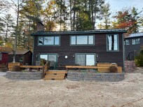 This is a great 4-season house for that multi-generational vacation. Gentle sloping property makes it easy to get around. Adults can sit on the deck and keep an eye on the kids playing on the beach or in the water.