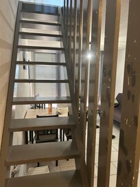 El dúplex también tiene una gran terraza sombreada (9 m2, persiana), un espacio de estacionamiento privado con barrera fuera del condominio.