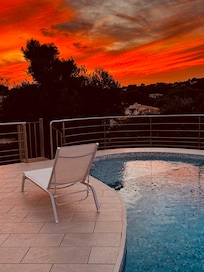 El alojamiento ofrece mucha privacidad, un jardín maduro, una hermosa piscina y una maravillosa vista al mar.