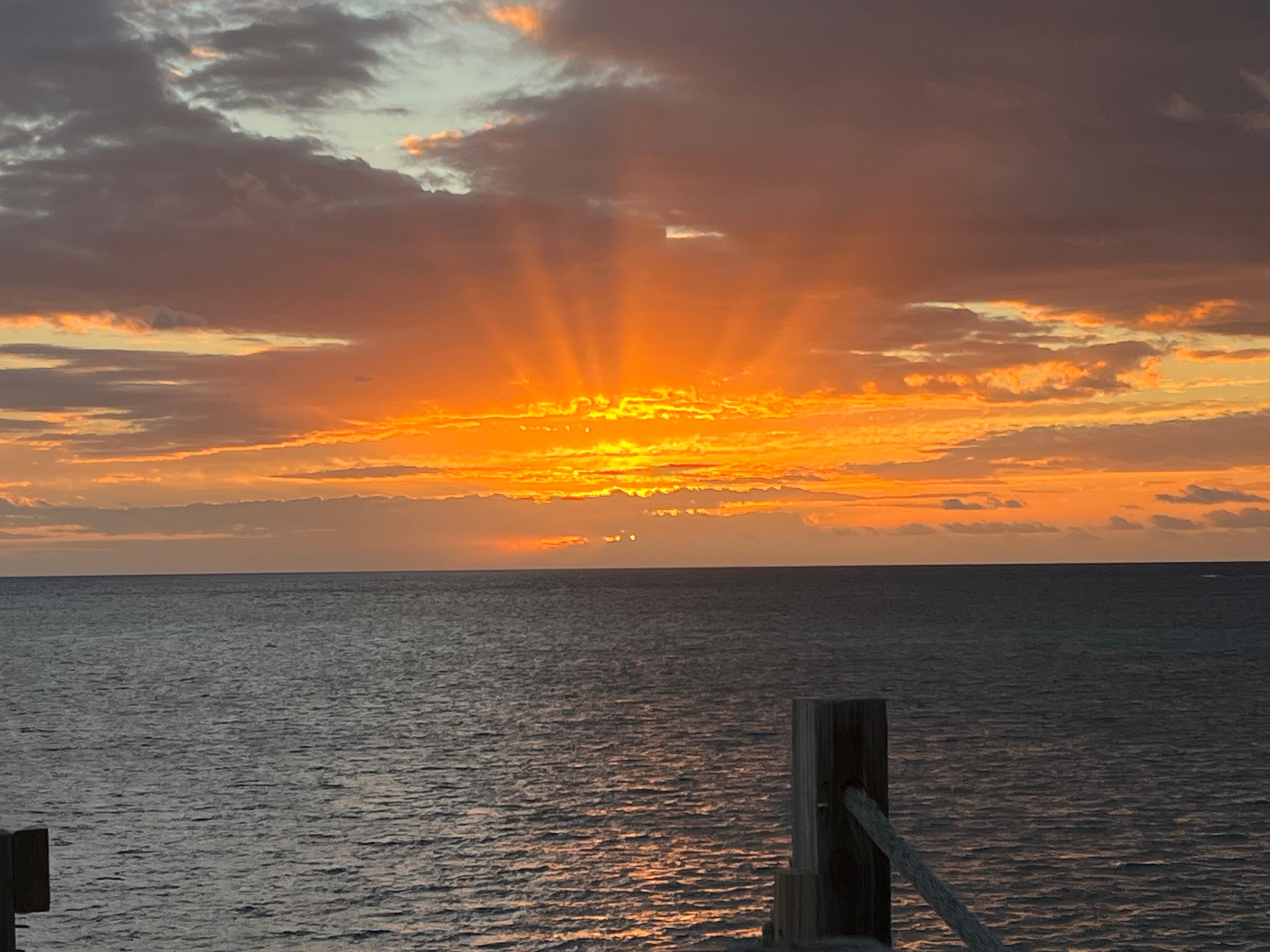 The property is as pictured, but even better in person! It was the perfect size for the two of us.The property is quiet (even with a neighbor) and sits on the perfect overlook! The beach below the steps, does have seaweed (to be expected in the ocean), but its a great place to explore, watch the dogs run, birds dive for fish, and catch the sunrise. It comes with everything you would need to cook in the kitchen, and shampoo/soap for the bathroom. There are also games and snorkle masks in the little table that helped make the week even better! The golf cart was fun to drive around to explore the island!
