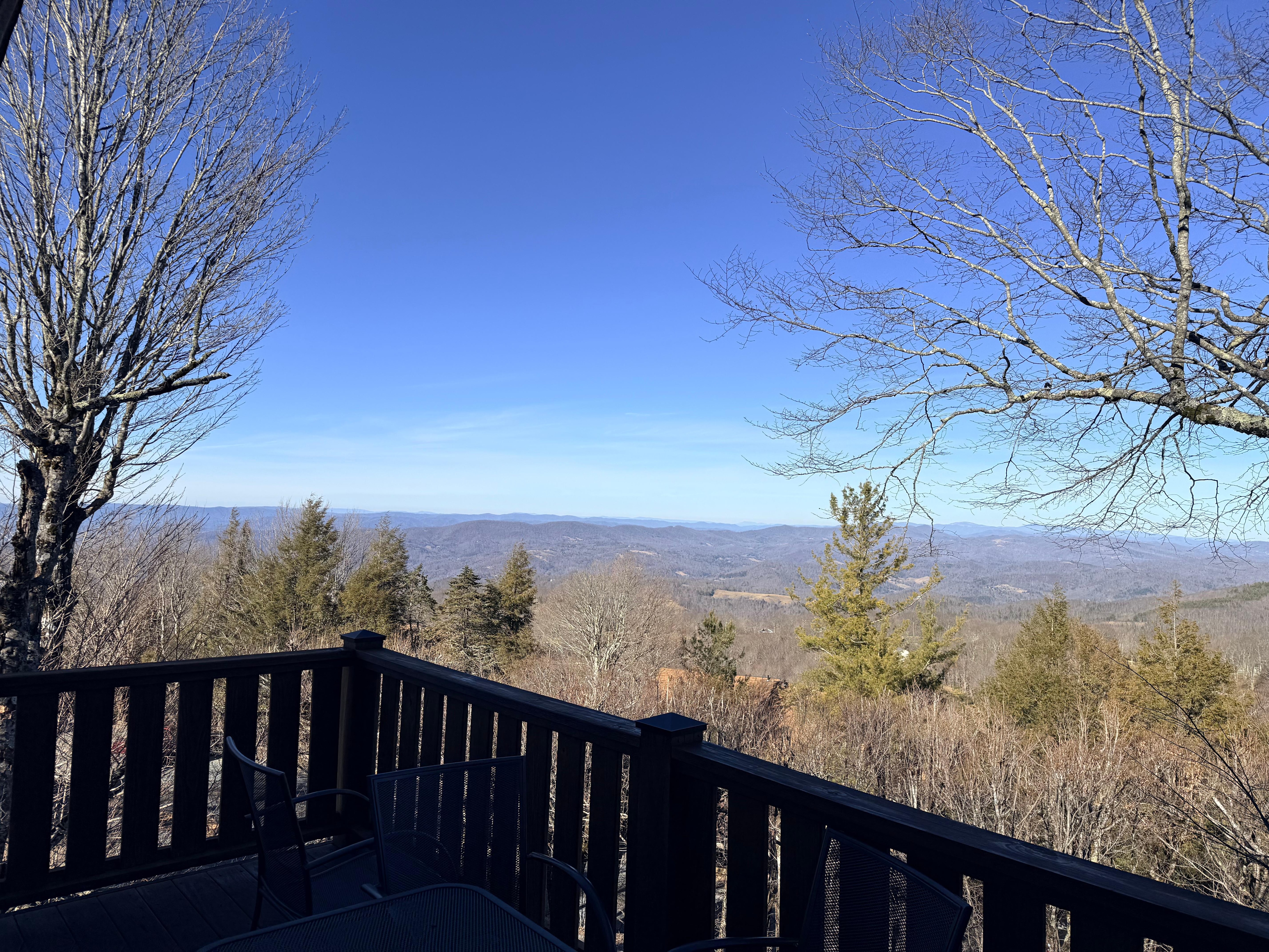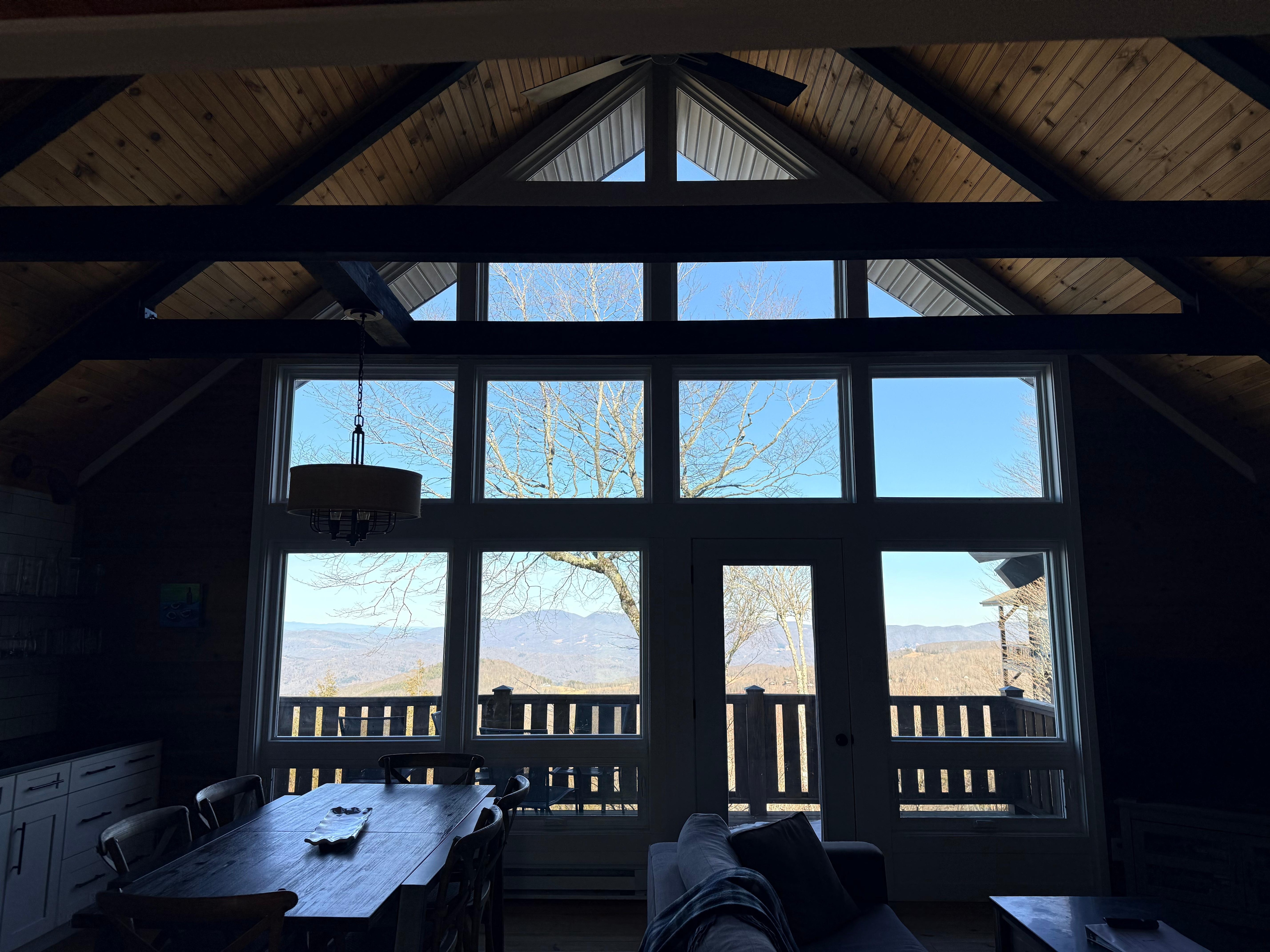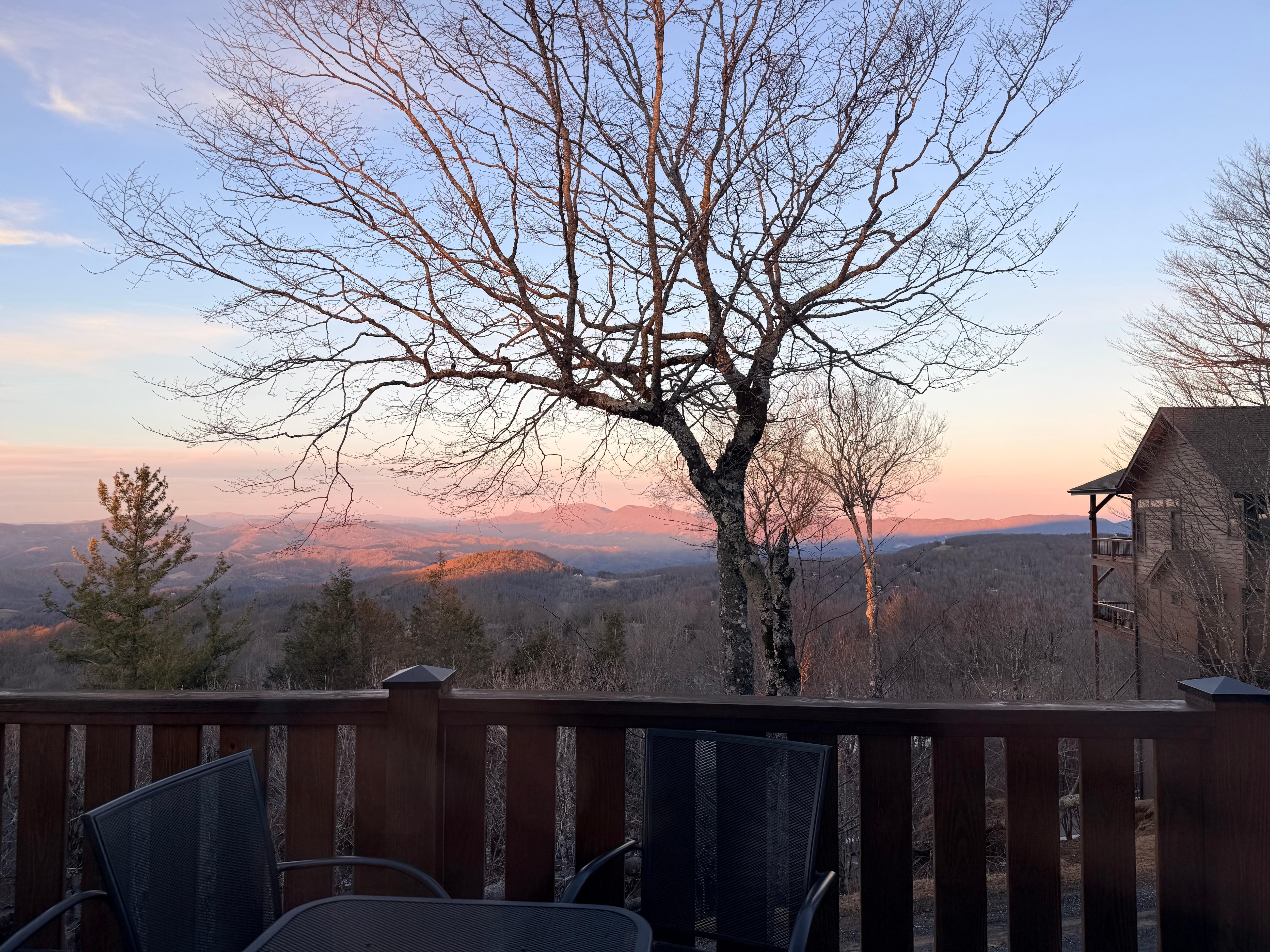 We stayed the weekend to watch the big rivalry football game btwn GEORGIA SOUTHERN VS APP STATE. Our stay was great! The view is incredible. Kitchen is stocked well! It was cold so the fireplace warmed us up nicely. The morning visits from the deer was an added bonus. The little city nearby was precious with Christmas lights. Brick Oven pizza was very good.