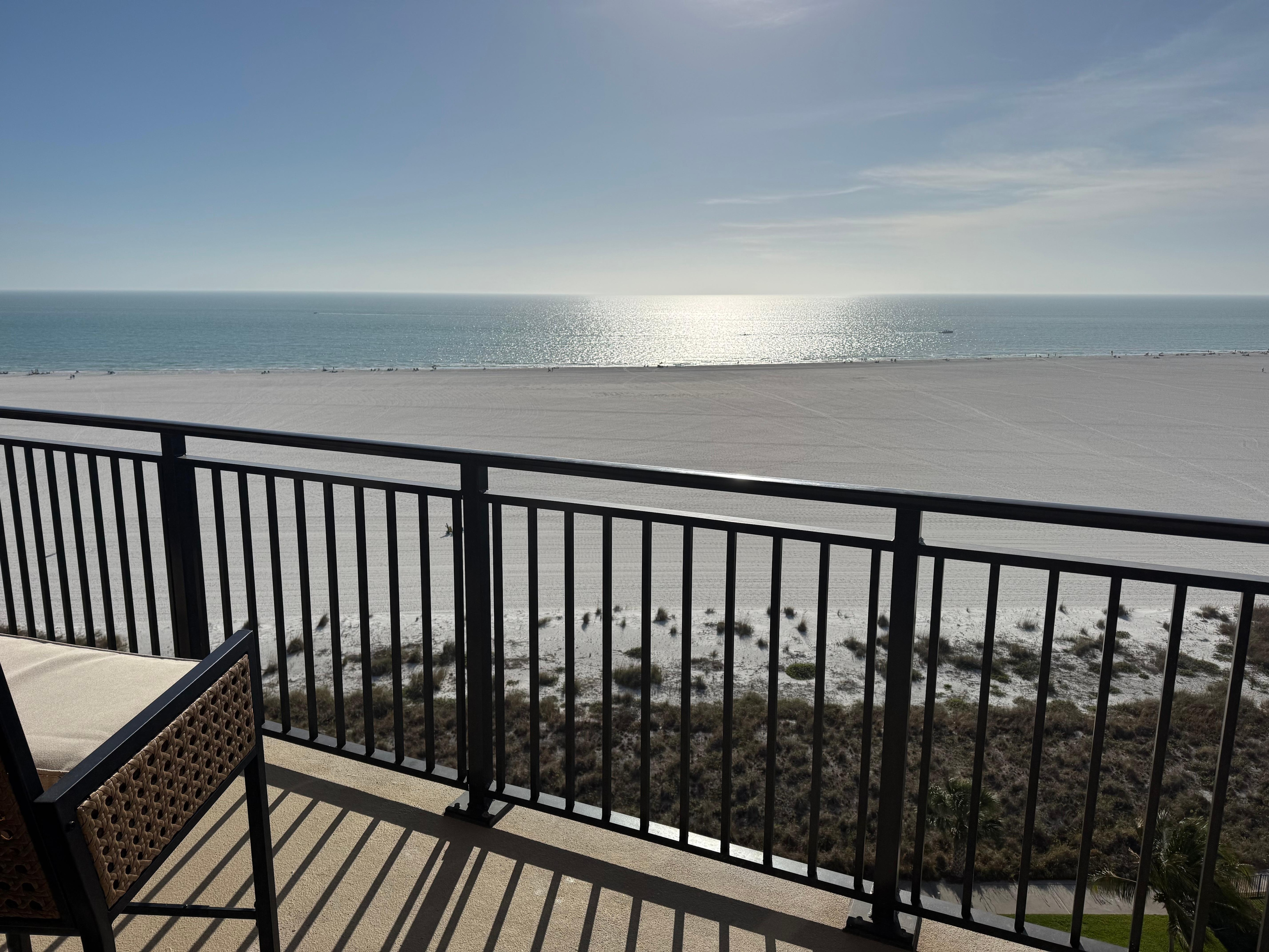 En lo alto del undécimo piso, tienes una vista fascinante del sol que brilla en el agua turquesa y una costa curva de arena blanca y sedosa que se extiende hasta donde puedes ver. El amplio balcón está amueblado con muchas mesas y sillas, lo que lo convierte en el lugar ideal para tomar un café por la mañana, tomar un cóctel al atardecer o simplemente leer un buen libro mientras la suave brisa del mar te masajea.